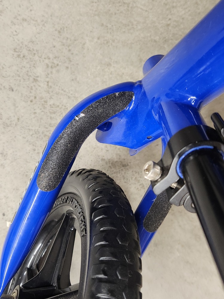 - Footrests below the saddle on each side help with balancing, gliding, pumping or jumping the bike