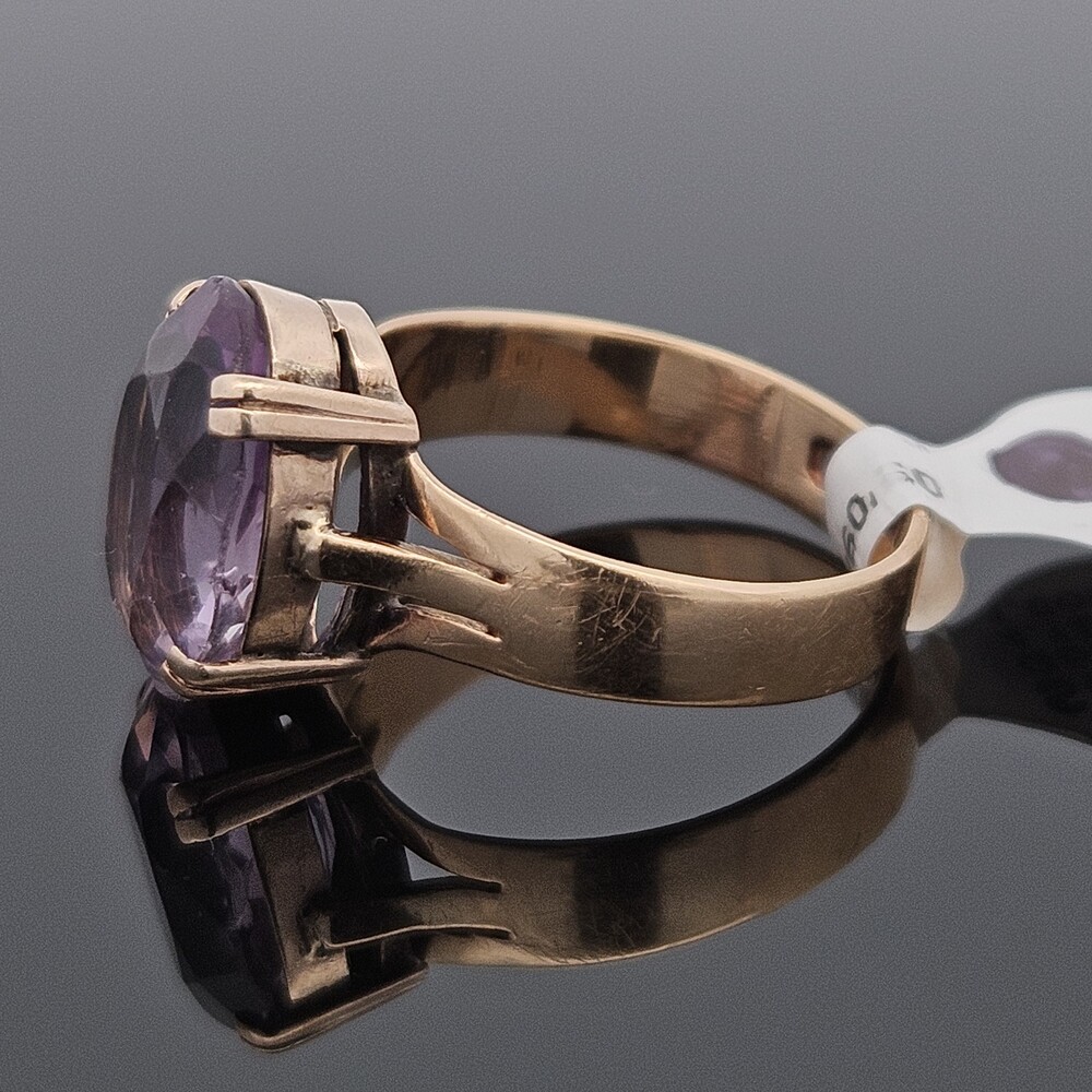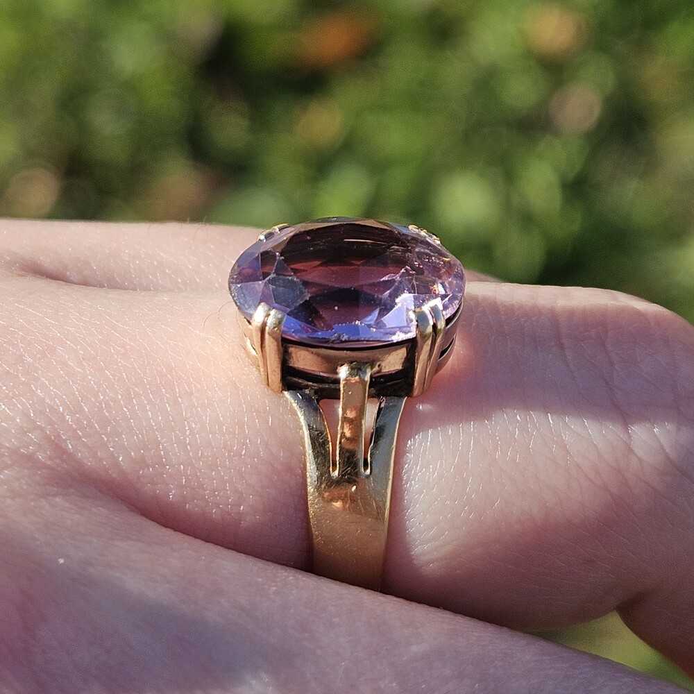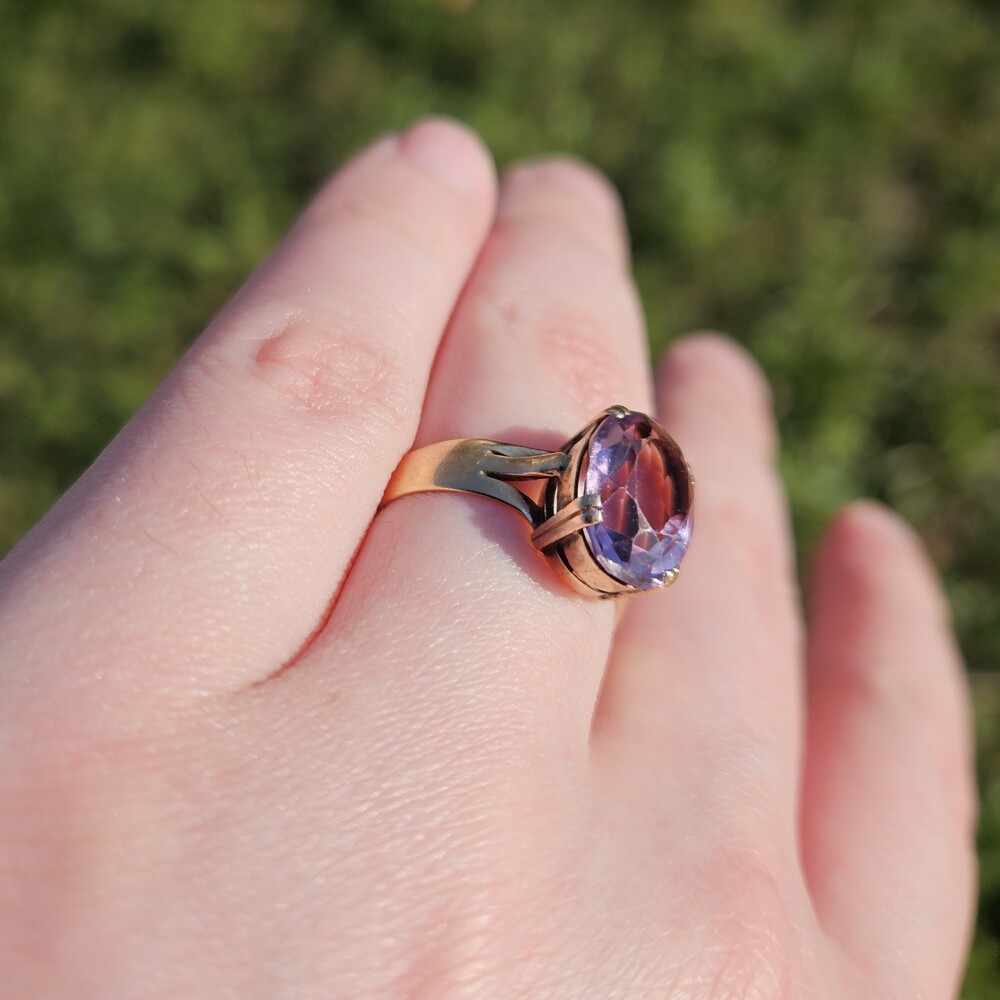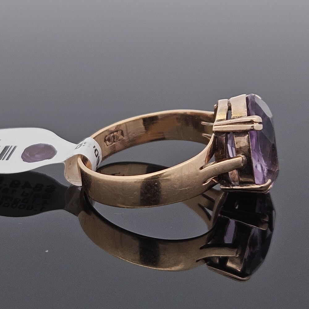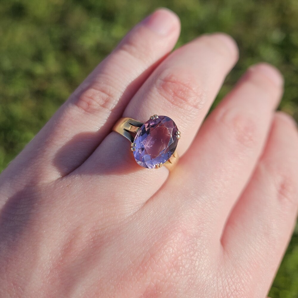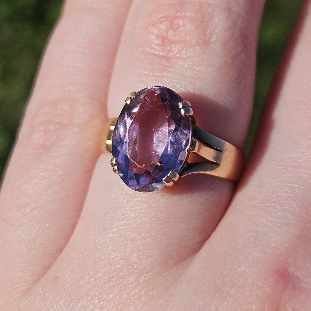 Vintage 18K Yellow Gold 4 Prong Solitaire Amethyst Ring 13x9mm Size 7