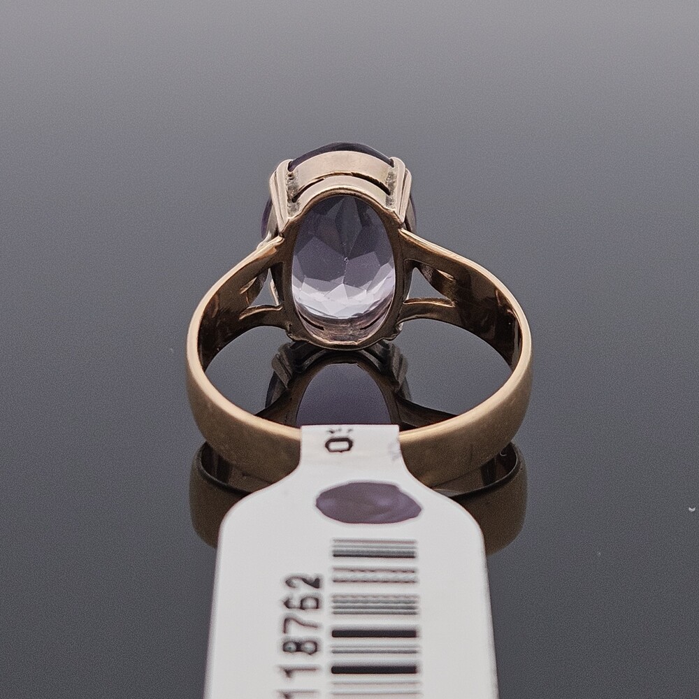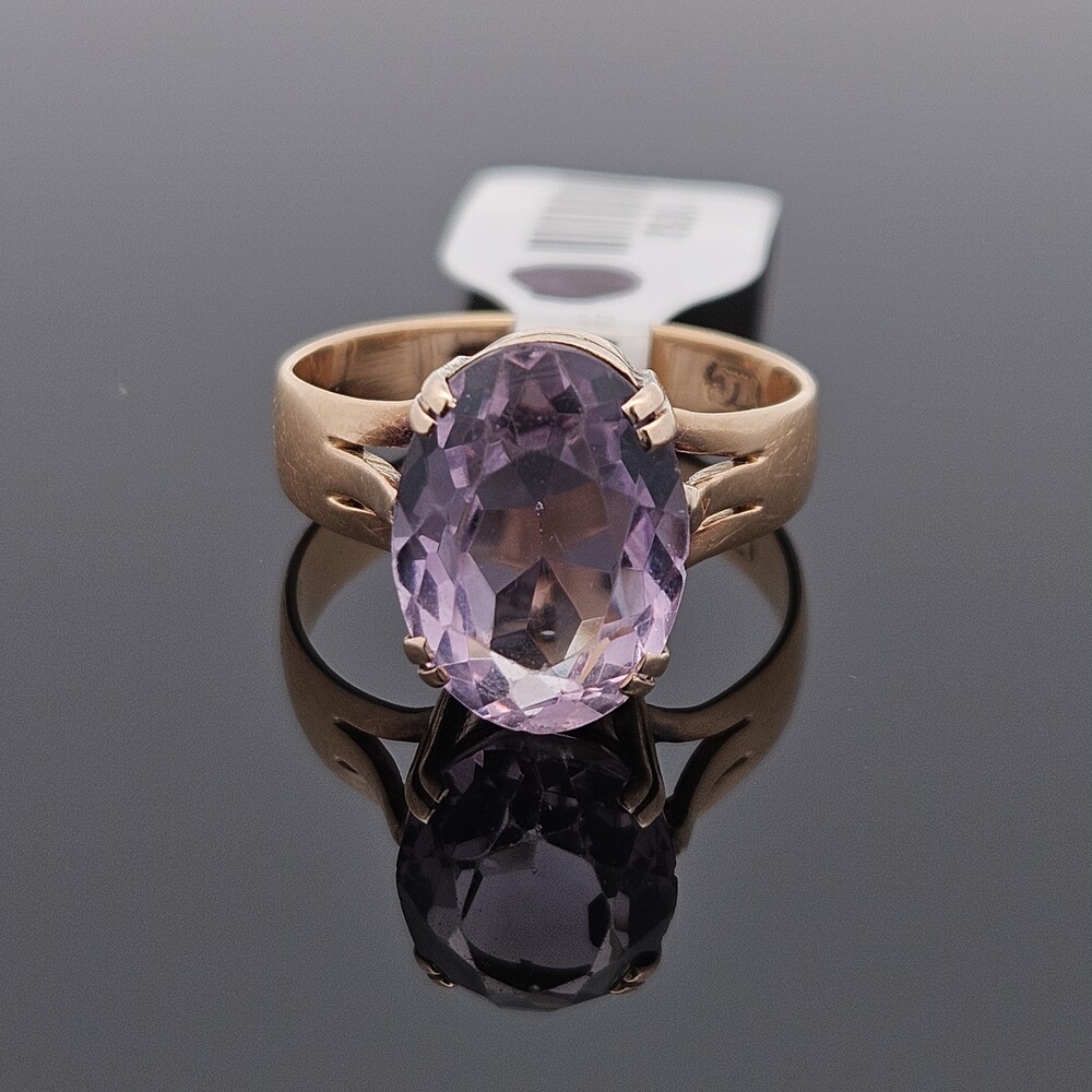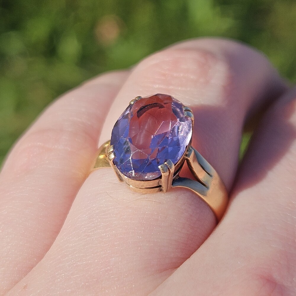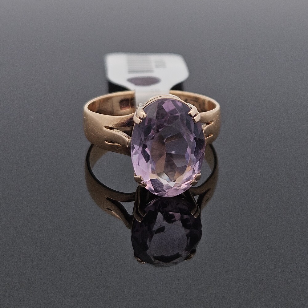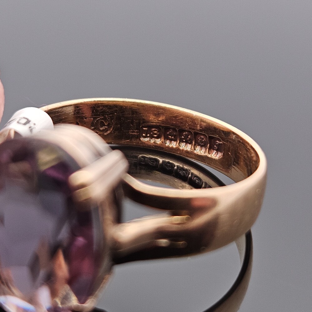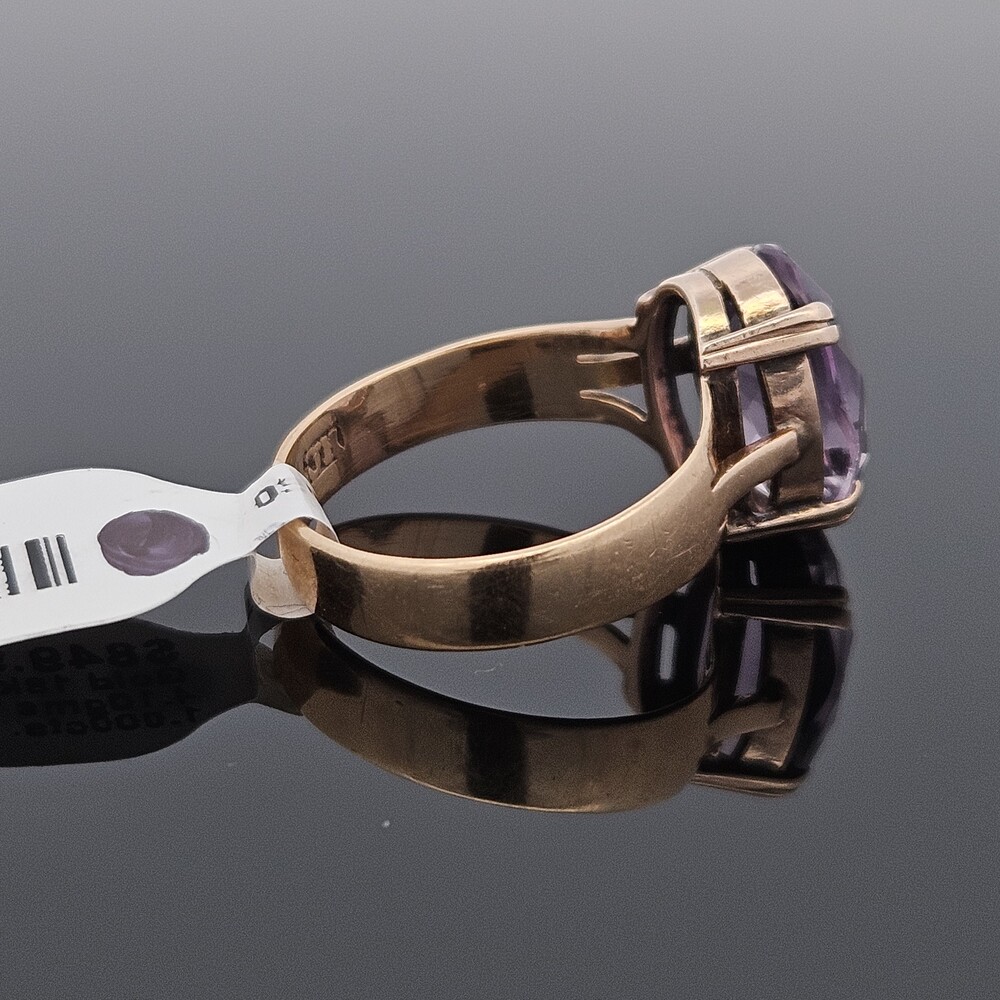 Vintage 18K Yellow Gold 4 Prong Solitaire Amethyst Ring 13x9mm Size 7