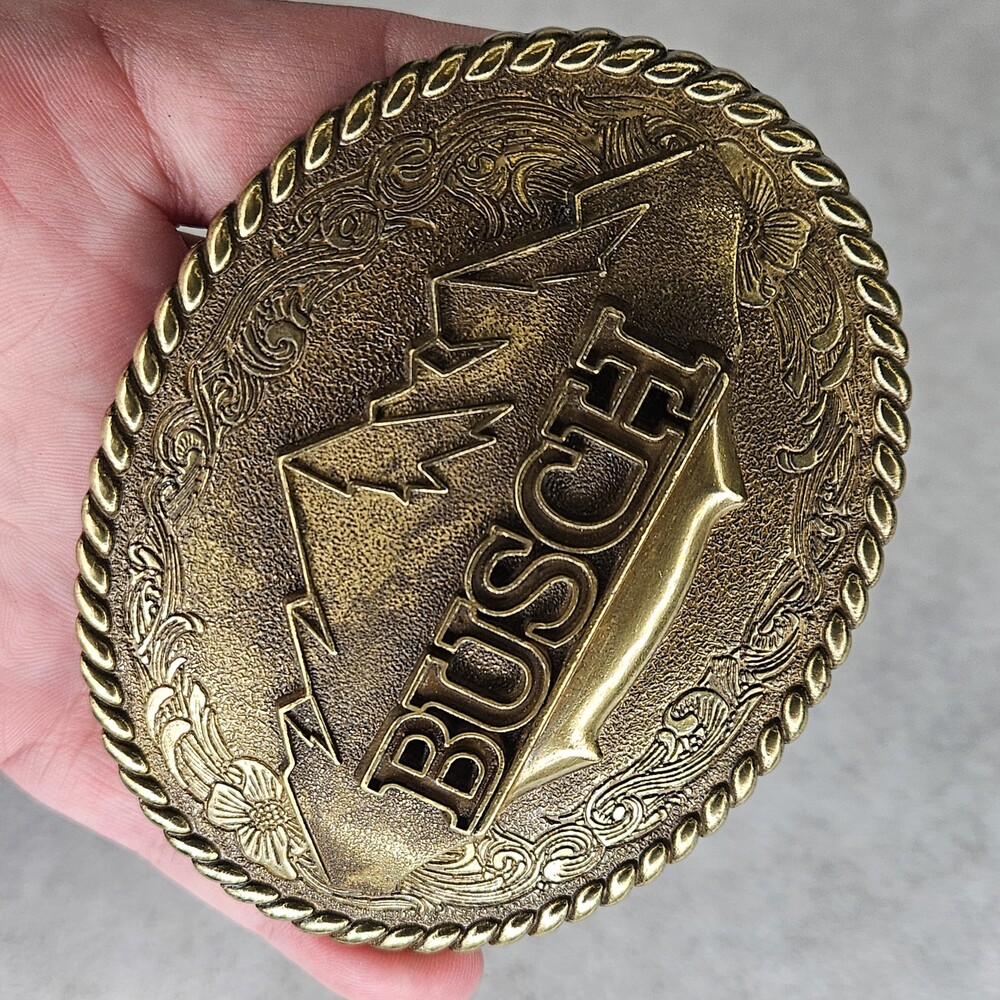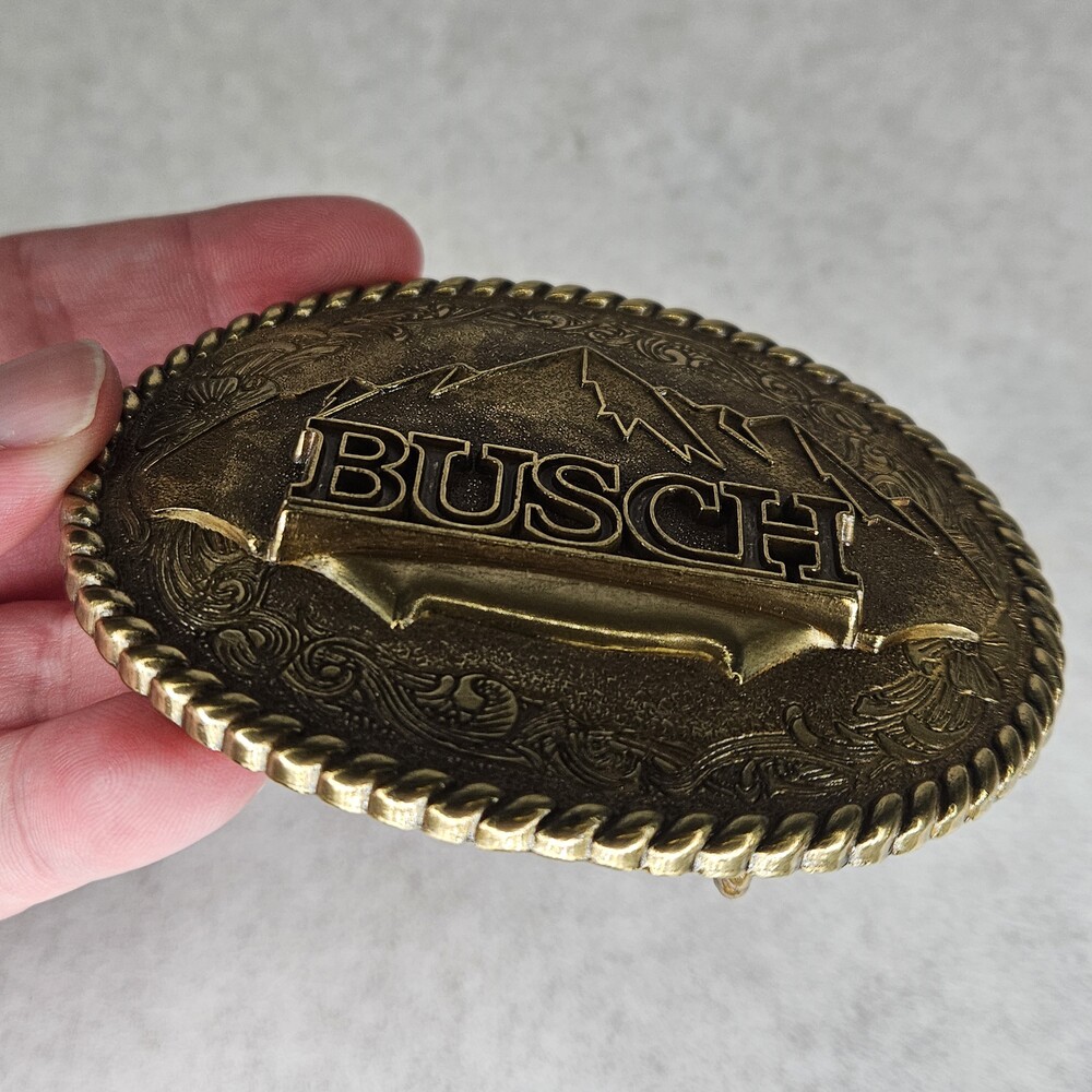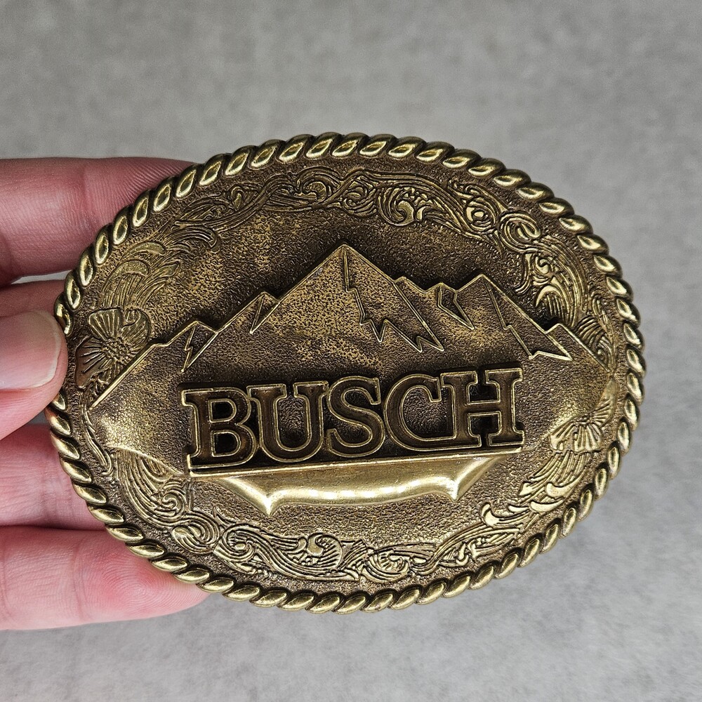 Vintage Busch Mountain Logo Brass Belt Buckle 1982 Raintree | Money and More