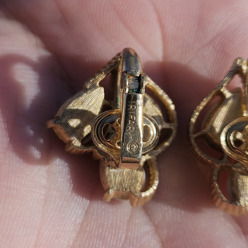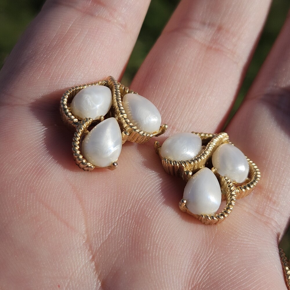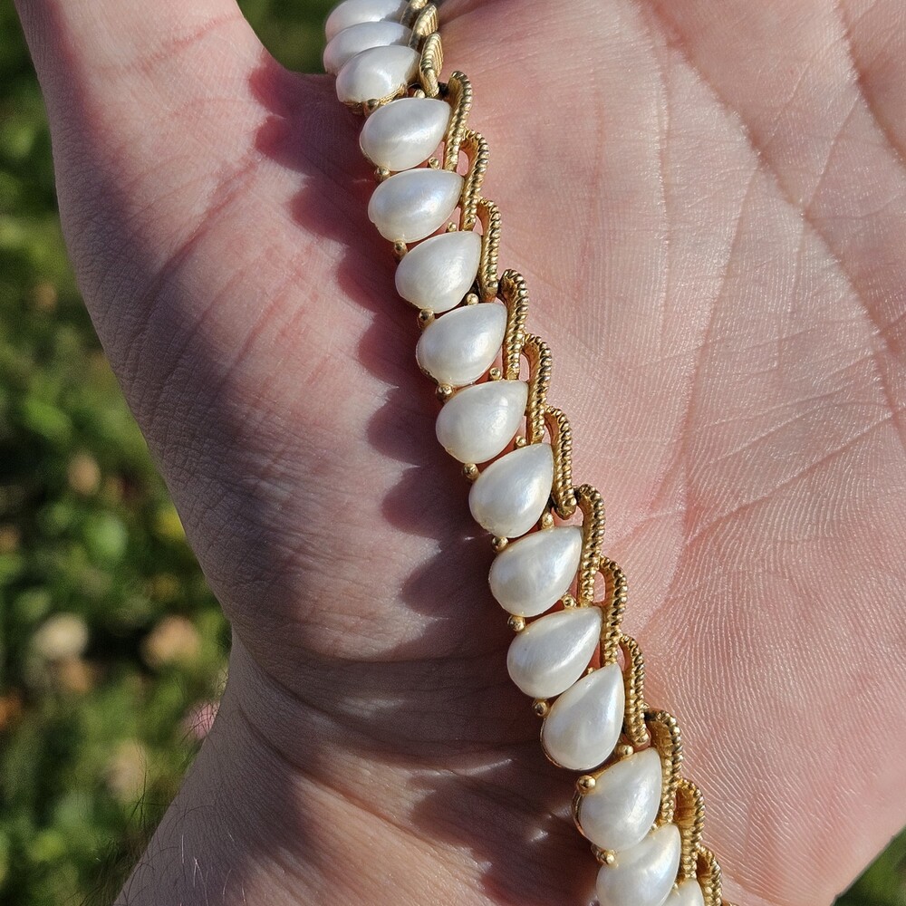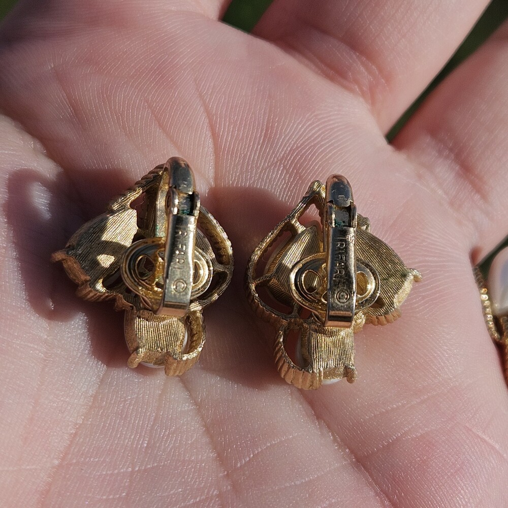 Vintage Trifari Teardrop Faux Pearl Gold Tone Earrings & Necklace Set 15.5 Inch