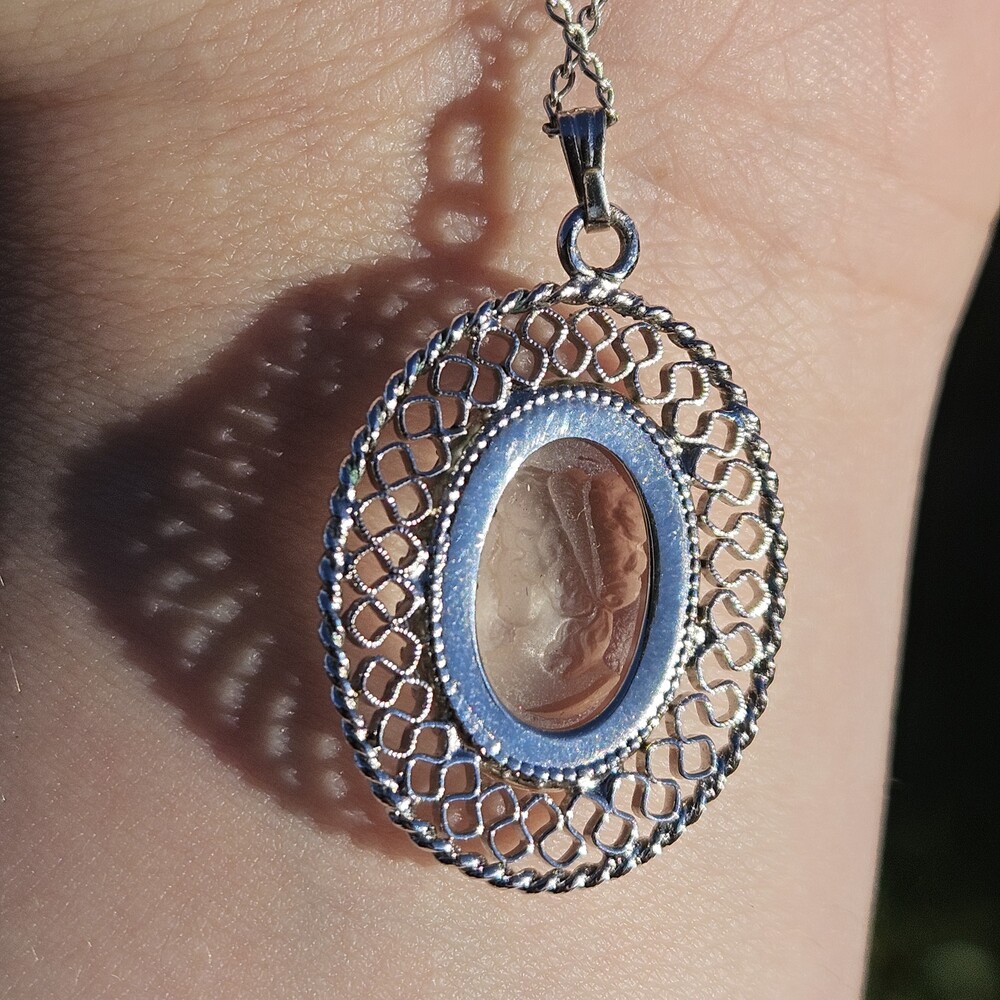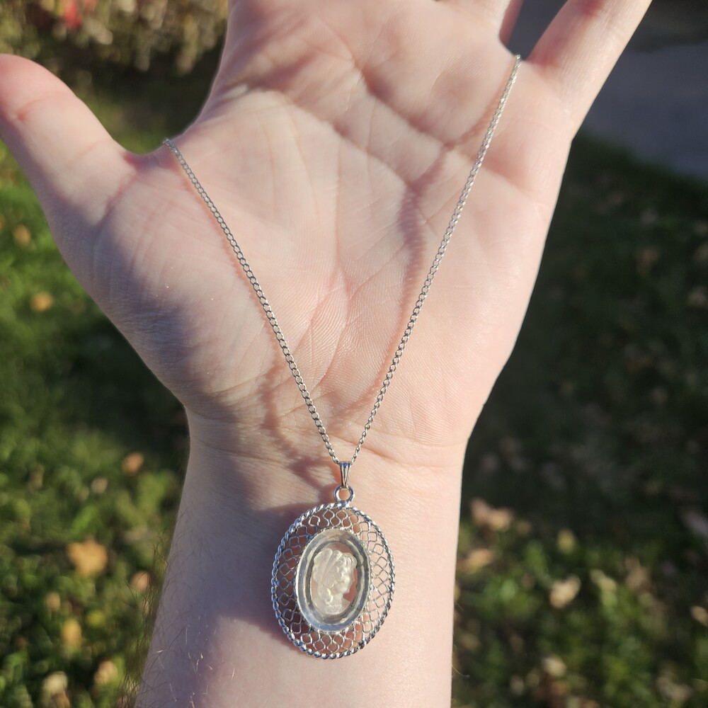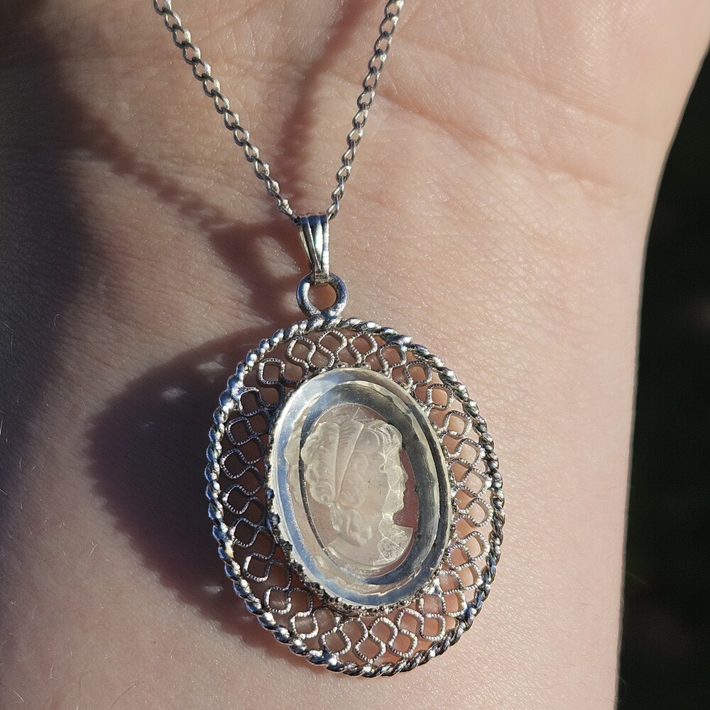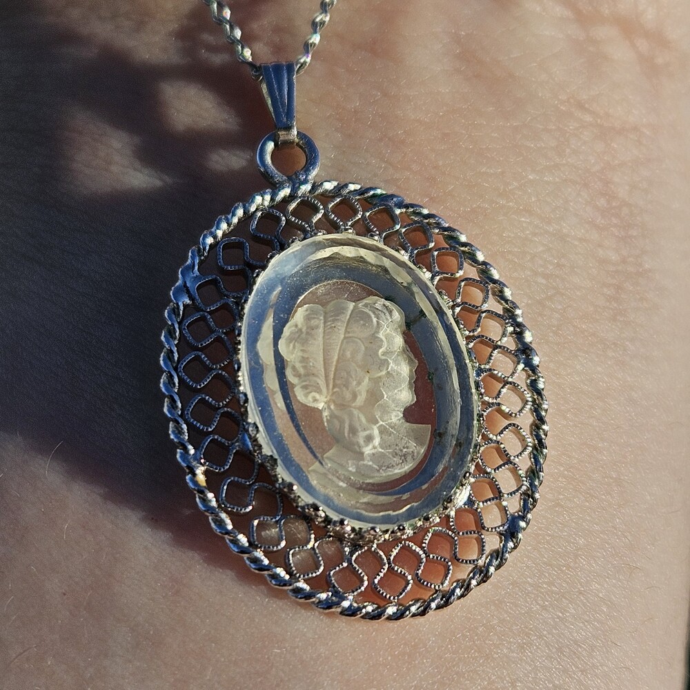 Whiting & Davis Cameo Crystal Lace Costume Pendant & Necklace 18 inches Great | Money and More